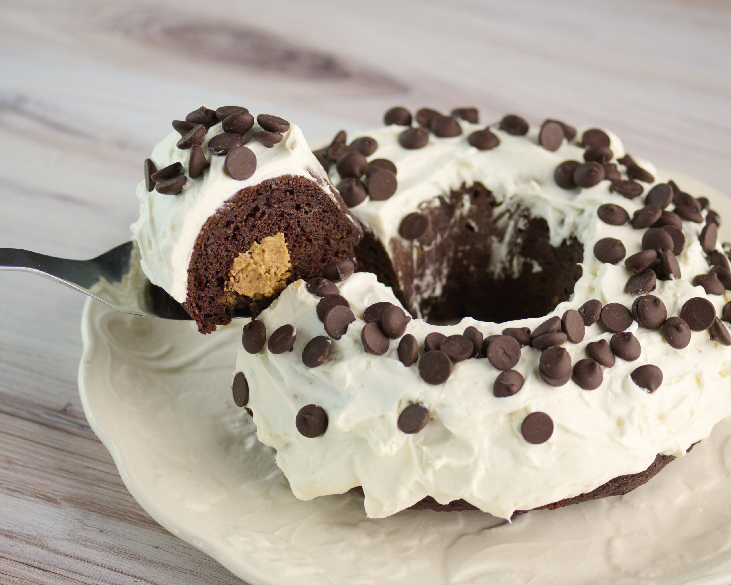 No Sugar Baker’s Chocolate Peanut Butter Bundt Cake